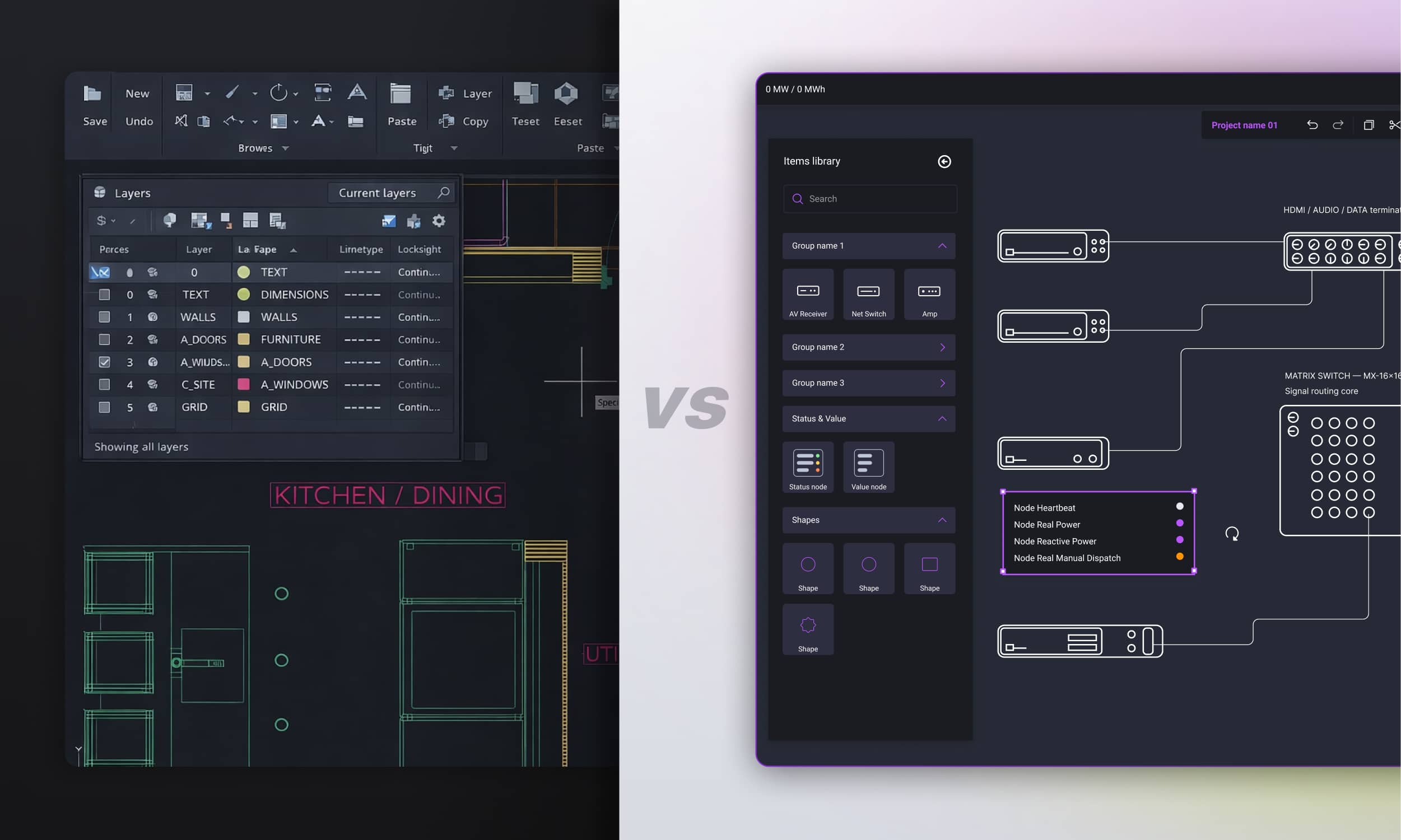 But AV system design is not general-purpose drafting. Once a project includes signal routing, device dependencies, or compatibility checks, CAD begins to show its limits.